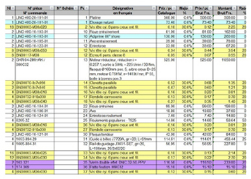 Listes de pièces